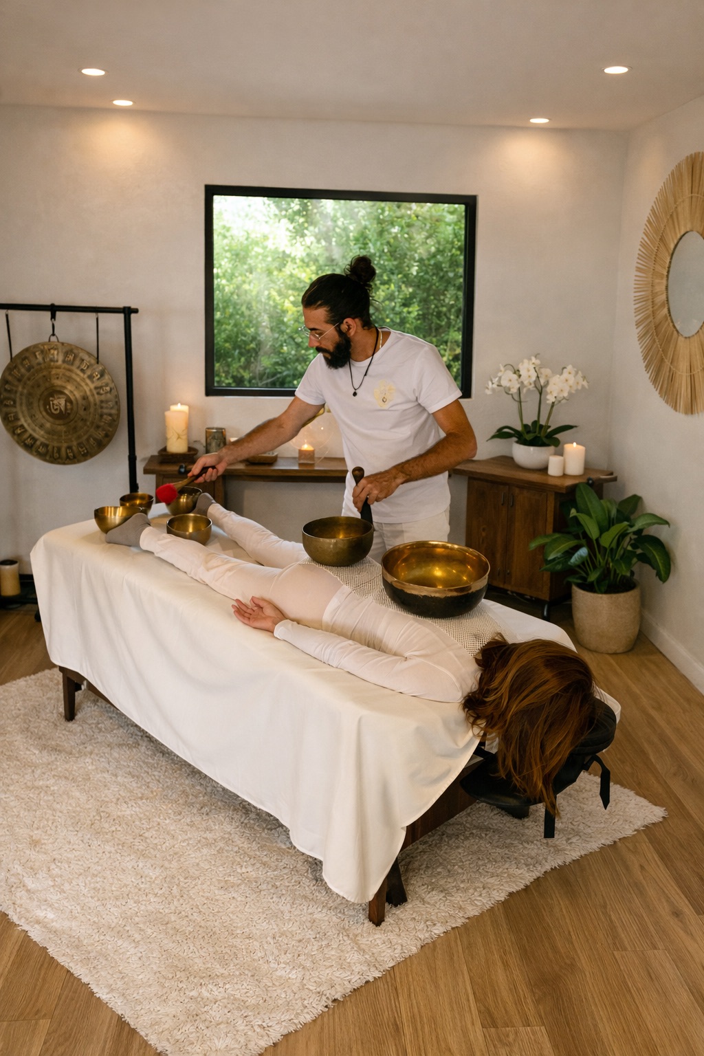 La sesión finaliza con el sonido envolvente del gong, que expande la vibración a nivel celular y potencia la experiencia de relajación, equilibrio y conexión interior.